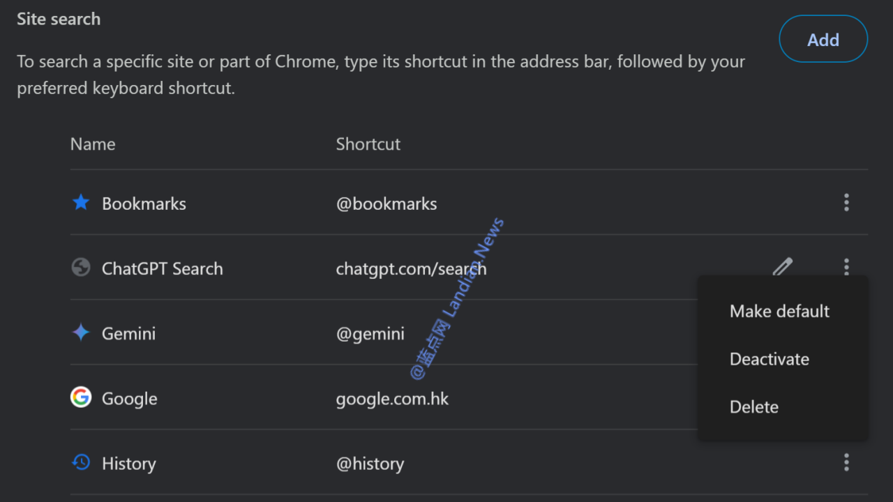 上图:添加后点击编辑将其设置为默认搜索引擎