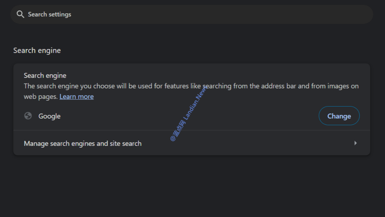 上图:点击关闭后又可以恢复为 Chrome 的默认搜索引擎也就是 Google